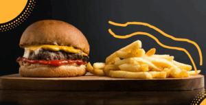 Hamburguesa con queso y papas fritas